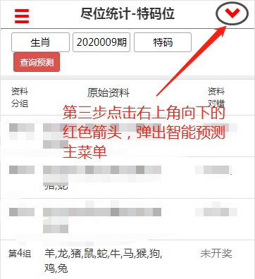 (3)点击“尽位统计”预测功能页面右上角向下的红色箭头,打开智能预测主菜单。