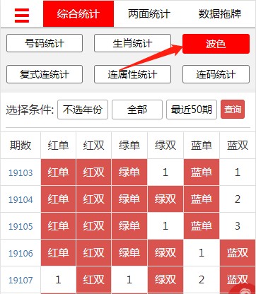 提示1:手机版所有的属性统计(包括号码、生肖)的条件参数均为:年份选择、平特选择、区间选择。