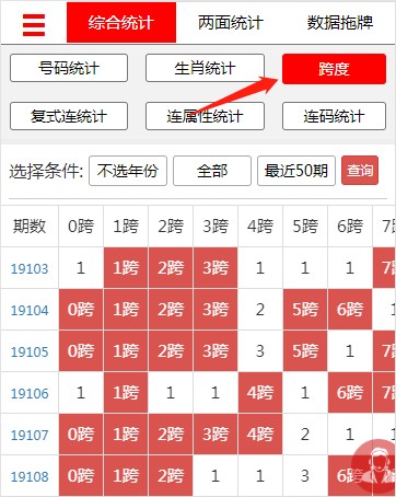 用于查询指定年份或指定区间内,特码或其他单码位、平特位、平码位的跨度数据统计情况。