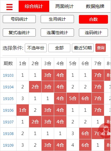用于查询指定年份或指定区间内,特码或其他单码位、平特位、平码位的合数数据统计情况。