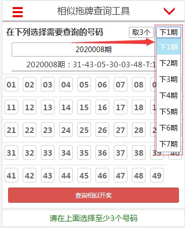 2.选择相似个数为:4个,选择下几期参数为:下1期,点击查询。