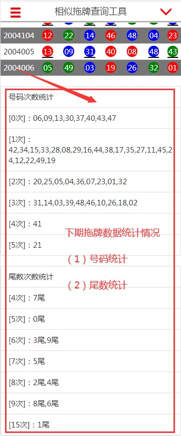 3.点击“查询相似开奖”,查询相似数据并统计拖牌数据: