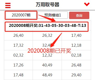万用取号器的预测模式是上期预测下期,比如我们要预测2020009期,则我们选择期数时,需要选择2020008期。