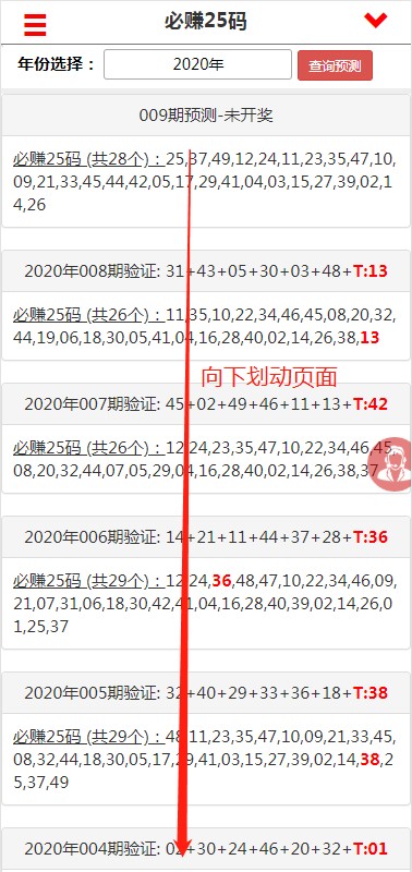 (6)通过向下滑动或拉动页面,可查询同一年度所有期数的预测情况。