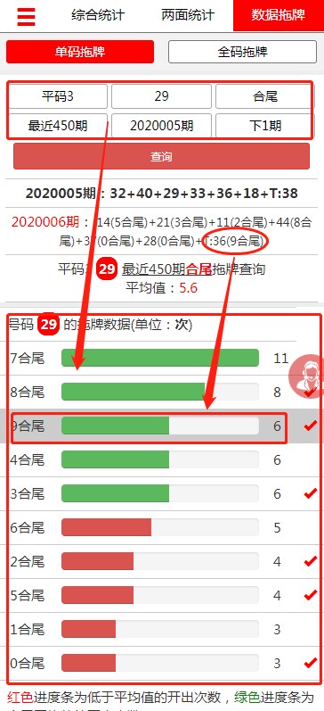 (4)查询平码3开29时,截止2020005期,最近450期内尾数的下期拖牌情况。