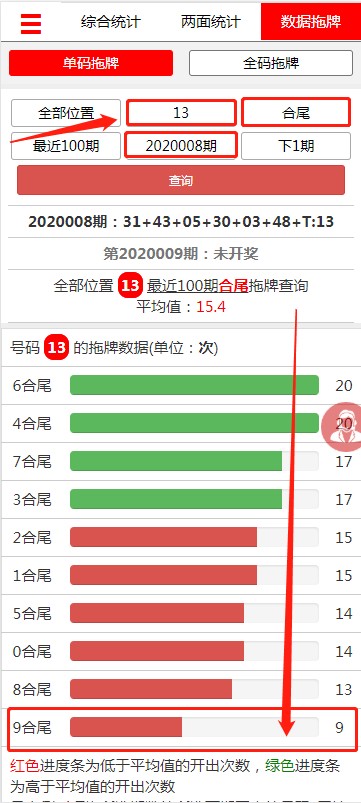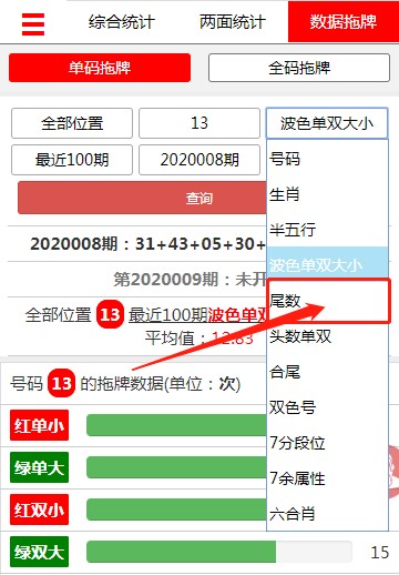 4.取杀1个尾数,将属性选择为尾数,点击查询,杀次数最少的那个尾数: