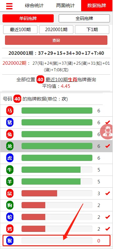 (1)进入单码拖牌工具,默认打开的是截止最新开出期数的拖牌数据。