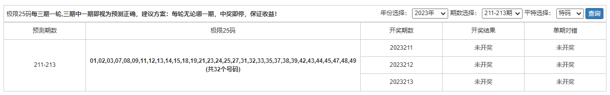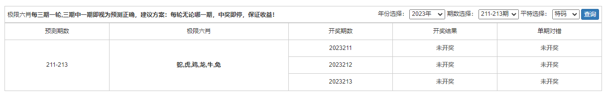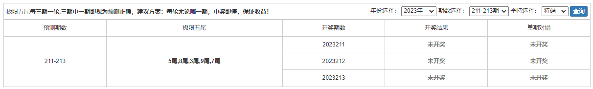 钱管家老澳门六合彩软件第2023211期极限预测三项统计: